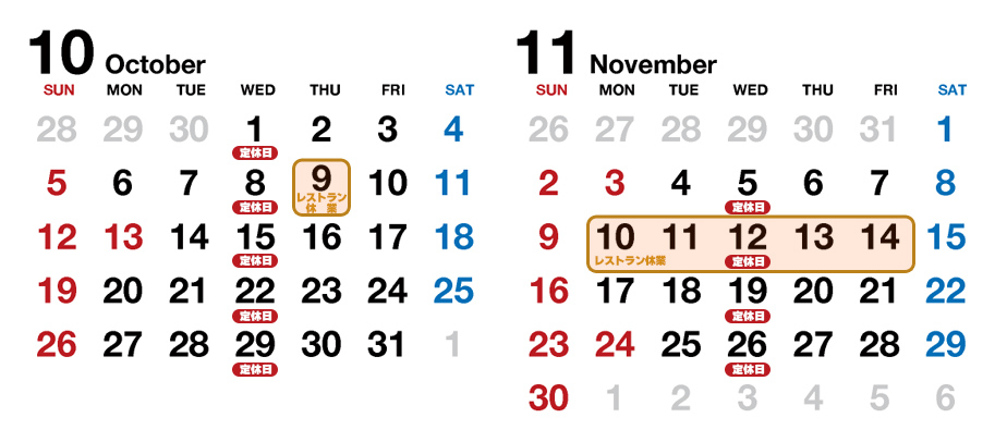 レストラン定休日